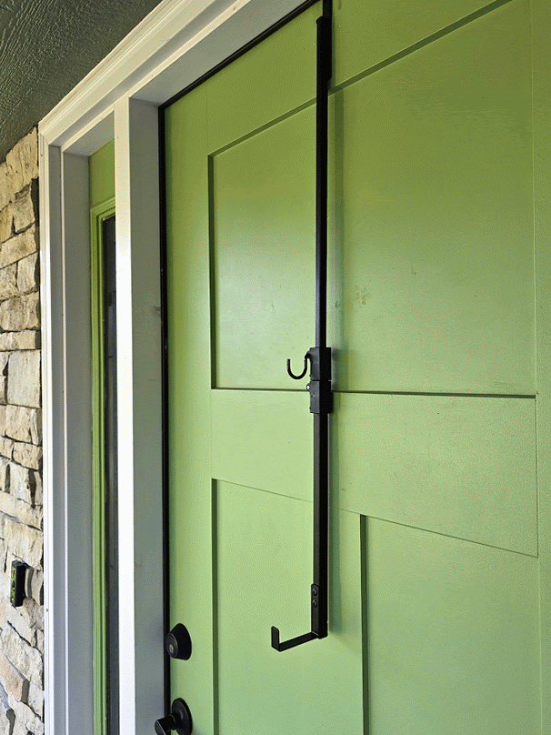 Unlike other wreath hangers that allow your wreath to swing in the wind or when the door is opened, WreathLuxe securely supports your wreath in two locations.